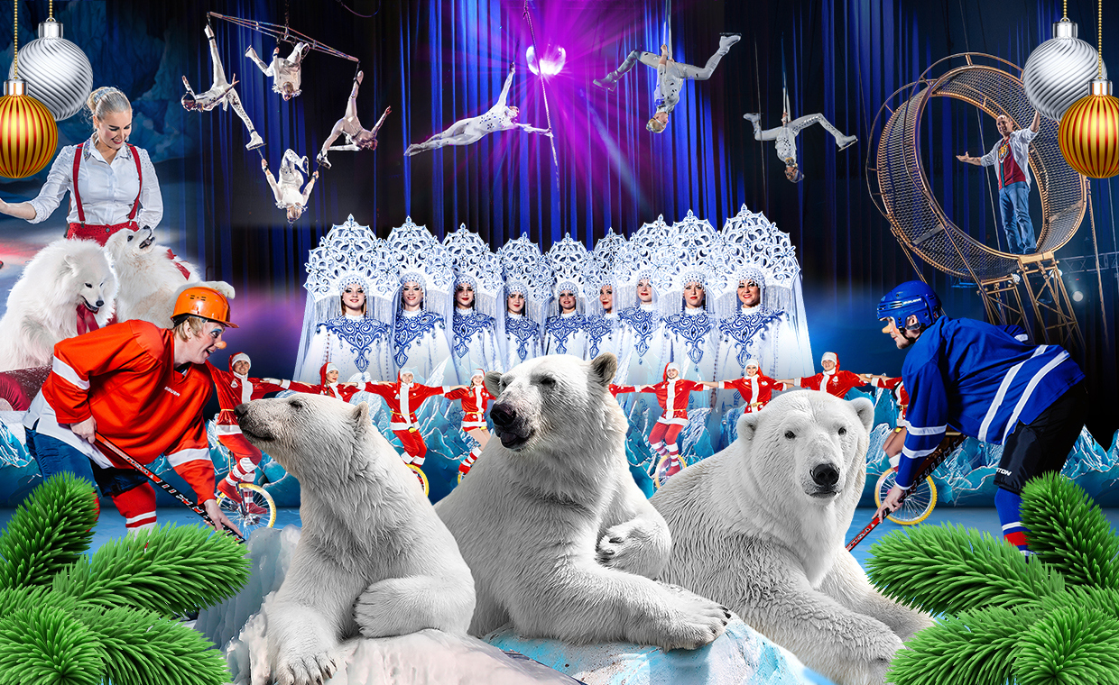 В программе принимают участие мастера манежа и фигурного катания:- единственный в мире номер с белыми медведями,